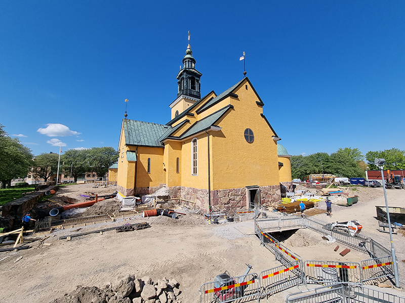 – Två fördelar med det här projektet är dels att det inte är en så gammal kyrka så det dyker upp arkeologiska fynd och dels att det inte är en kyrkogård, då är det en helt annan process, förklarar Robert. Samarbetet med Gävle Energi har flutit på väldigt smidigt, fortsätter han.
