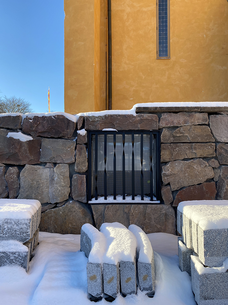 - Till- och frånluften har på ett diskret sätt byggts in i en ny mur vid kyrkan. För arbetet krävdes en speciell murare som hade kompetens att bygga på rätt sätt, så de kom från Närke.