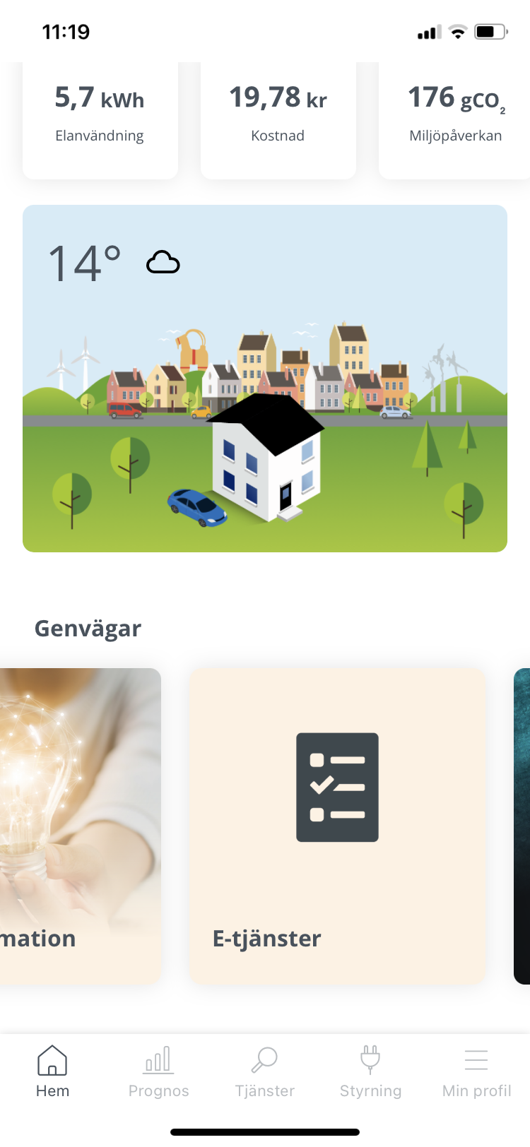 Nu finns det en ny funktion i appen där du kan se din nästa hämtningsdag för sopor. Är du kund hos oss, och redan inloggad, behöver du inte ens skriva in din adress. Du hittar funktionen under genvägar och E-tjänster.