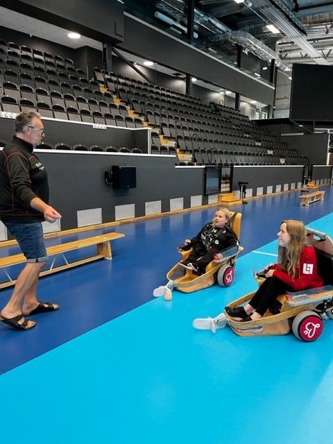 Innan vi säger hejdå, frågar Johanna om vi vill prova att köra stolen. Det som kan se lätt ut visar sig vara oerhört svårt. Stolen styrs av en joystick som svarar på minsta rörelse och det går fort. Vilken upplevelse! Som nybörjare fick vi hålla oss till den lägsta farten och det gick fort nog. Nu inser vi ännu mer hur skickliga våra spelare är. Koordination, fart och bollkontroll. Det krävs stor skicklighet för att spela elinnebandy och det krävs enormt mycket träning för att bli skicklig.
