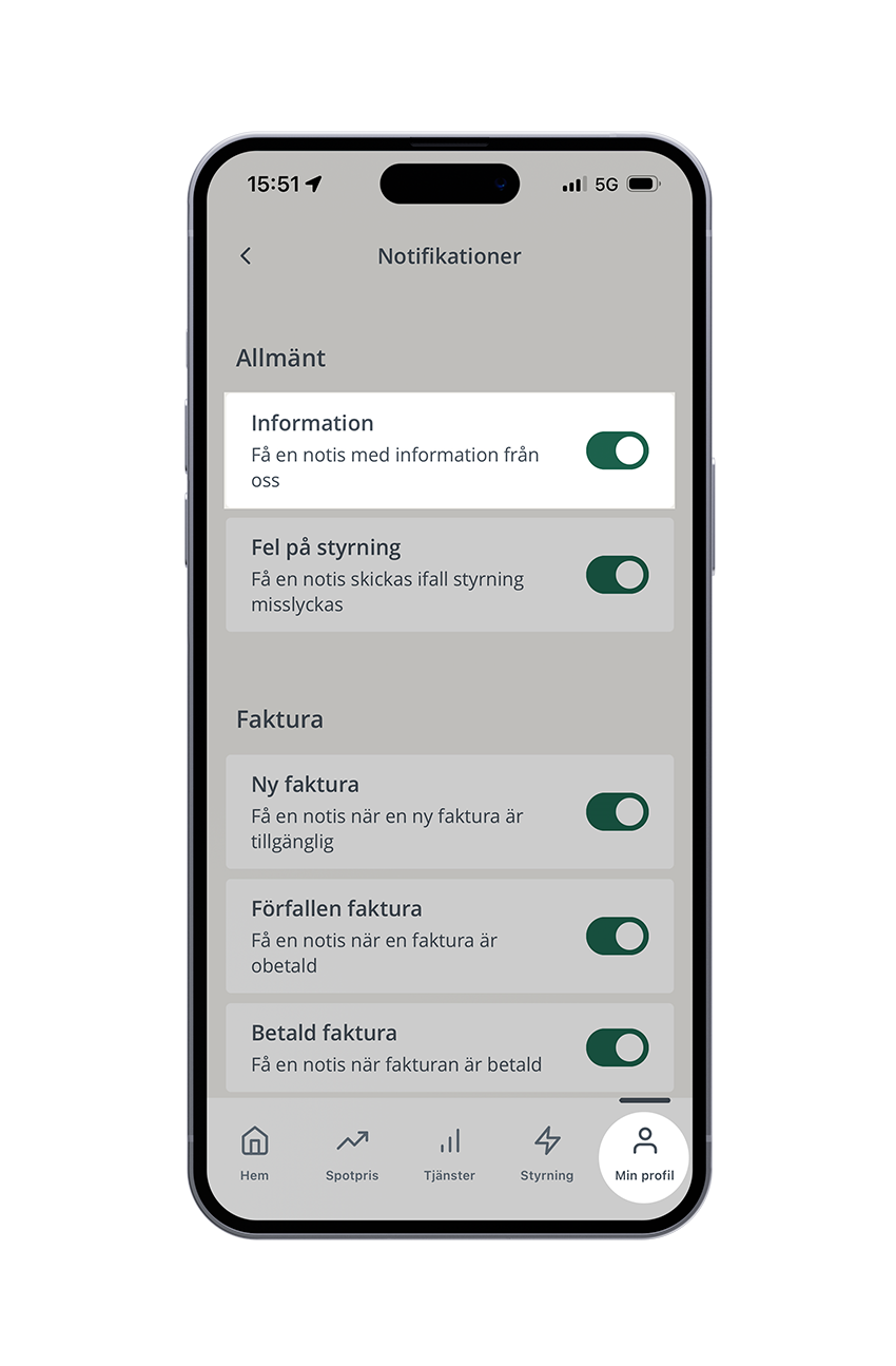 - Aktivera ”Information” i appen – Gå till din profil i appen och se till att alternativet Information är aktiverat under notisinställningar.