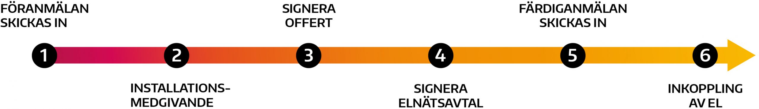 • Föranmälan skickas in Du kontaktar en behörig elinstallatör som skickar in en föranmälan till oss. Vi har en handläggningstid på cirka 3–6 veckor från det att föranmälan kommit in.